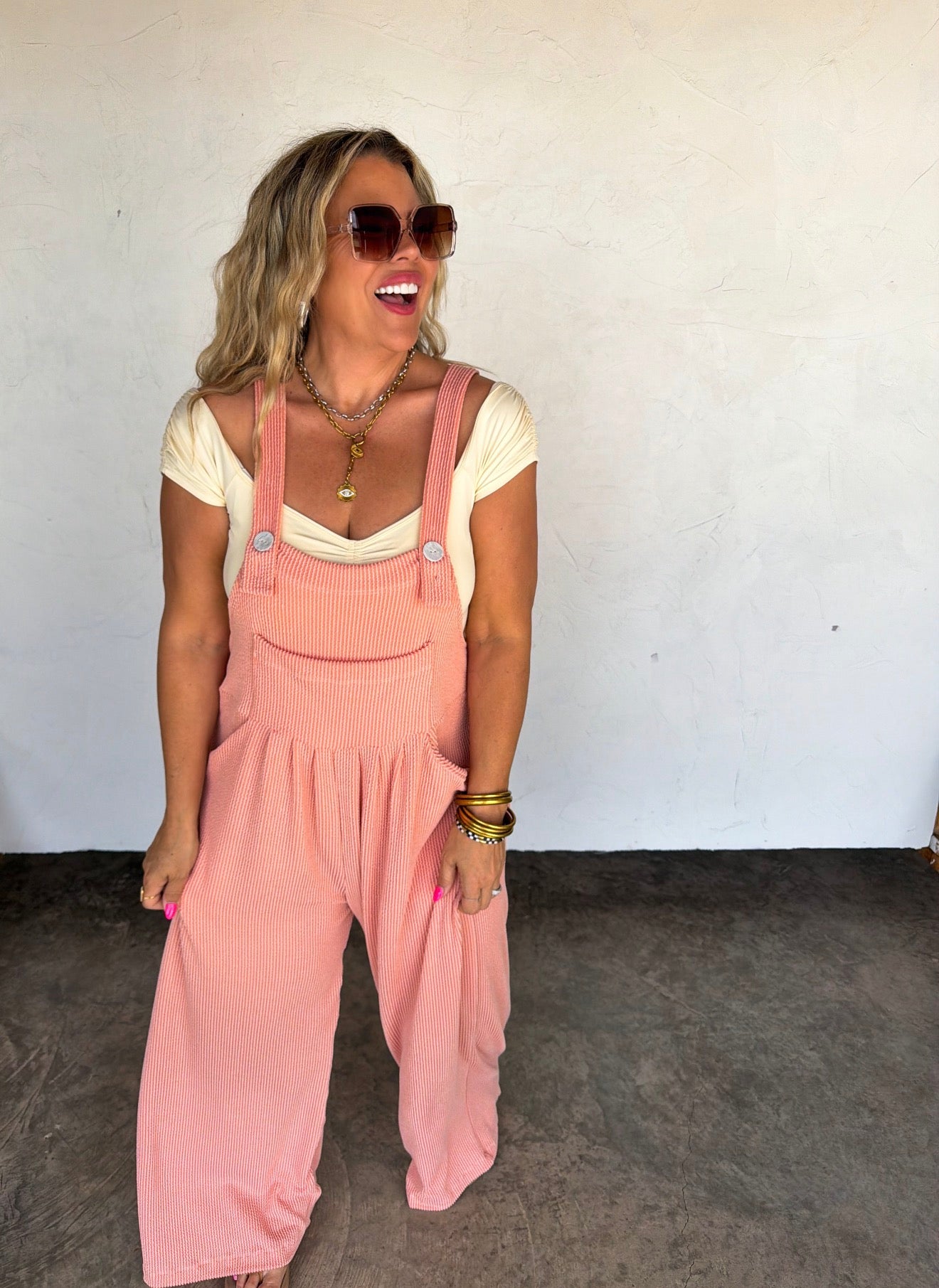 Premium quality ribbed fabric ensures the overalls are thick and not sheer. Features include pockets and an adjustable button strap for fit, (fasten the button up or down to adjust length) complete with a stylish front pocket.