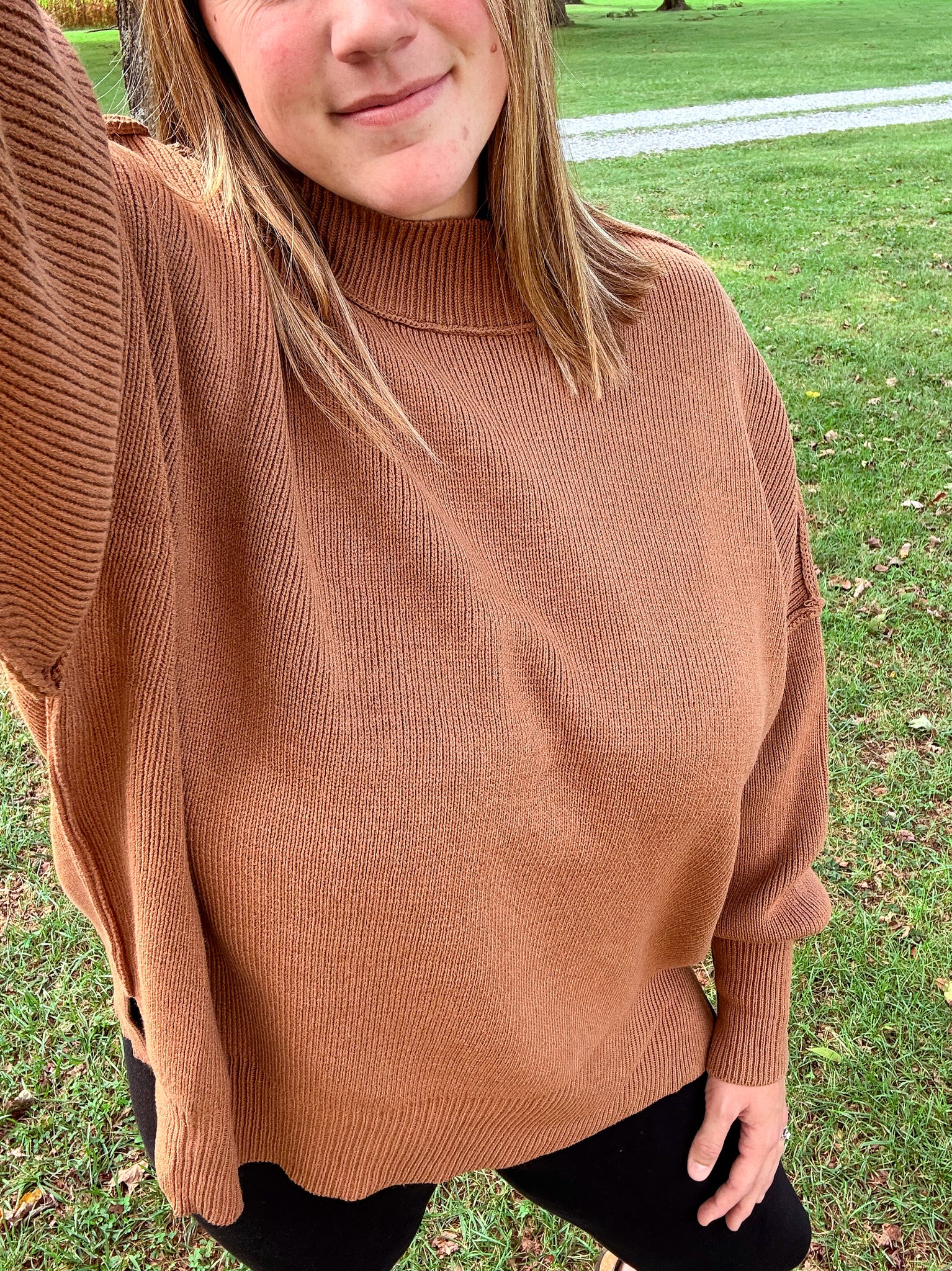 Thick sweater with side splits. Slightly lower hem in the back. GREAT quality!